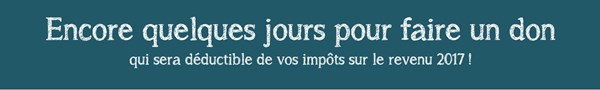 Pour bénéficier de cette déduction sur vos impôts sur le revenu 2017, il vous reste jusqu’au 31 décembre pour nous accorder un soutien supplémentaire.