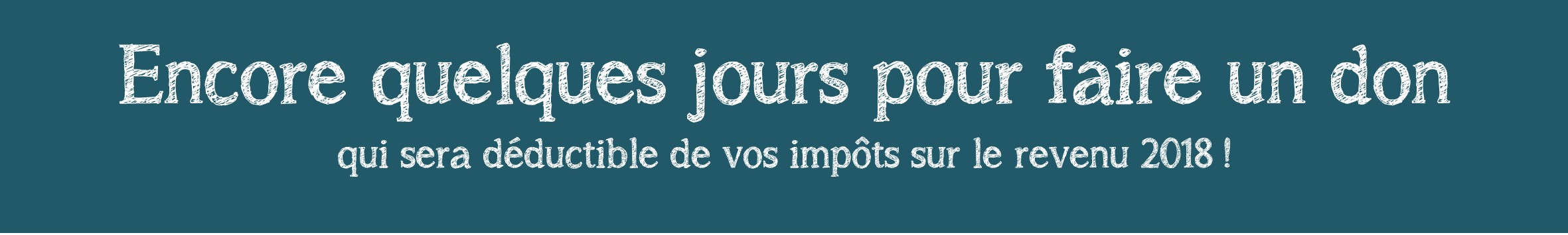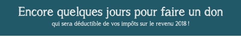 Pour bénéficier de cette déduction sur vos impôts sur le revenu 2018, il vous reste jusqu’au 31 décembre pour nous accorder un soutien supplémentaire.