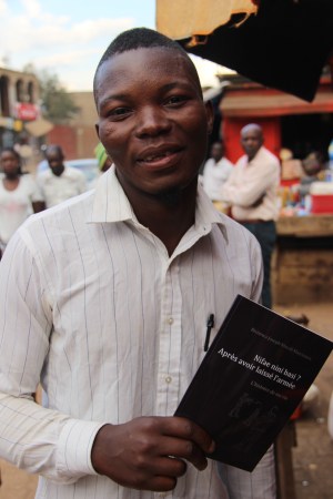 Au détour de la route principale de Bukavu, j’entends appeler « Nadège! » et quelle n’est pas ma surprise quand, me retournant, je me retrouve face à face avec Bisimwa ! Ce jeune, ancien-enfant soldat recueilli par le BVES en 2010, avec qui j’avais travaillé sur l’écriture de son livre « Nifae nini basi? Après avoir laissé l’armée – L’histoire de ma vie ». Kidogos a d’ailleurs fait l’édition du livre en 2012 !
