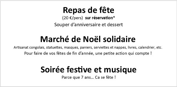 Kidogos a le plaisir de vous inviter pour fêter ensemble nos 7 ans ! Nous vous réservons une soirée inédite avec un repas de fête et un marché de Noël solidaire dans une ambiance chaleureuse !